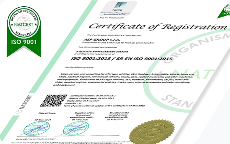 Jsme držiteli certifikace ISO 9001:2015, která potvrzuje vysokou úroveň našeho systému řízení kvality. Tento certifikát je pro nás závazkem k neustálému zlepšování a k poskytování spolehlivých a kvalitních služeb našim zákazníkům i partnerům.