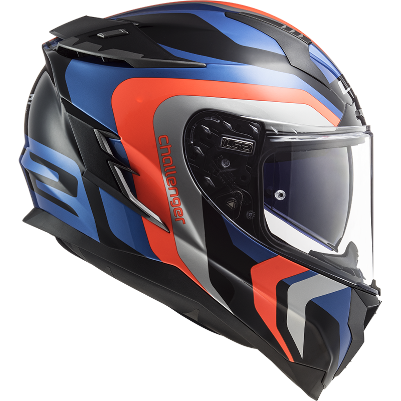 Vysokovýkonná sportovně-cestovní integrální helma. Přilbu Challenger navrhli konstruktéři a inženýři LS2 ve španělské Barceloně, kteří na ní spolupracovali s jezdci z MOTOGP, MOTO2 a MOTO3, aby soutěžila s těmi nejlepšími helmami na trhu. Společně tak vyvinuli nejbezpečnější a nejinovativnější výkonnostní přilbu současnosti. Skořepina z unikátního HPFC (High Performance Fiberglass Composite) přináší vysokou bezpečnost při nárazu, vynikající cirkulace vzduchu díky účinnému větracímu systému se dvěma vstupy v horní části, které jsou kanály uvnitř EPS výstelky propojené se zadními extraktory. Plexi s úpravou proti poškrábání + folie Pinlock Max Vision zdarma. Měkce polstrovaný interiér je vyroben z hypoalergenních a prodyšných mikrovláken, rychle vyjímatelné lícnice systému Emergency Quick Release.