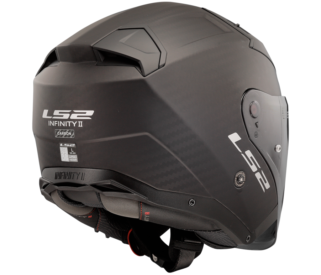 Otevřená karbonová helma Infinity II s integrovanou sluneční clonou a vysokou bezpečností přináší moderní design, všestrannost i pocit svobody za jízdy. Ať už preferujete jakýkoli styl jízdy, přilba Infinity II nabízí vše, co potřebujete v městské džungli, při každodenním ježdění do práce nebo na dálkových expedicích: špičkové pohodlí, vysokou bezpečnost a poutavý design. Zcela nová karbonová skořepina poskytuje spolehlivou ochranu v případě nárazu. Čiré plexi odolné proti poškrábání je nyní nově otevírané tlačítkem. Větrání Dynamic Flow-through Ventilation a kompletně vyjímatelný a pratelný hypoalergenní interiér X-Static© s obsahem stříbra.