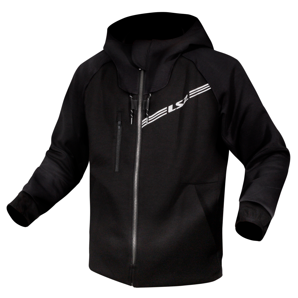 Vysoce komfortní funkční mikina s kapucí ve sportovním designu pro městské motocyklisty. Vysoký límec pro větší ochranu proti větru. Odolná proti oděru díky vyztuženým ramenům a loktům s chrániči.