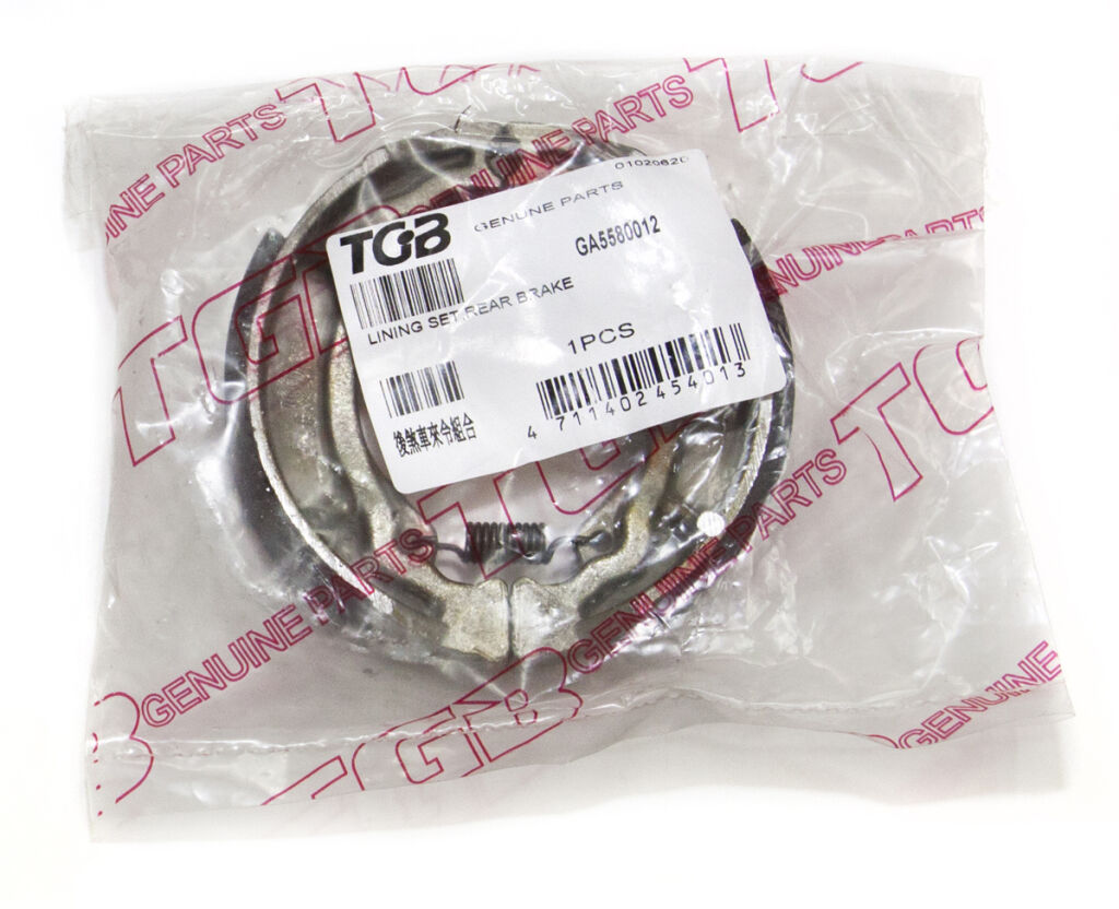 Originální sada zadní bubnové brzdy (čelisti a brzdové obložení) pro TGB TAPO 50, EXPRESS 50. Brzdová obložení TGB jsou vyráběná podle stejných standardů jako obložení na nových strojích, včetně složení směsi pro optimální brzdný výkon, délku brzdné dráhy a životnost brzdových bubnů.